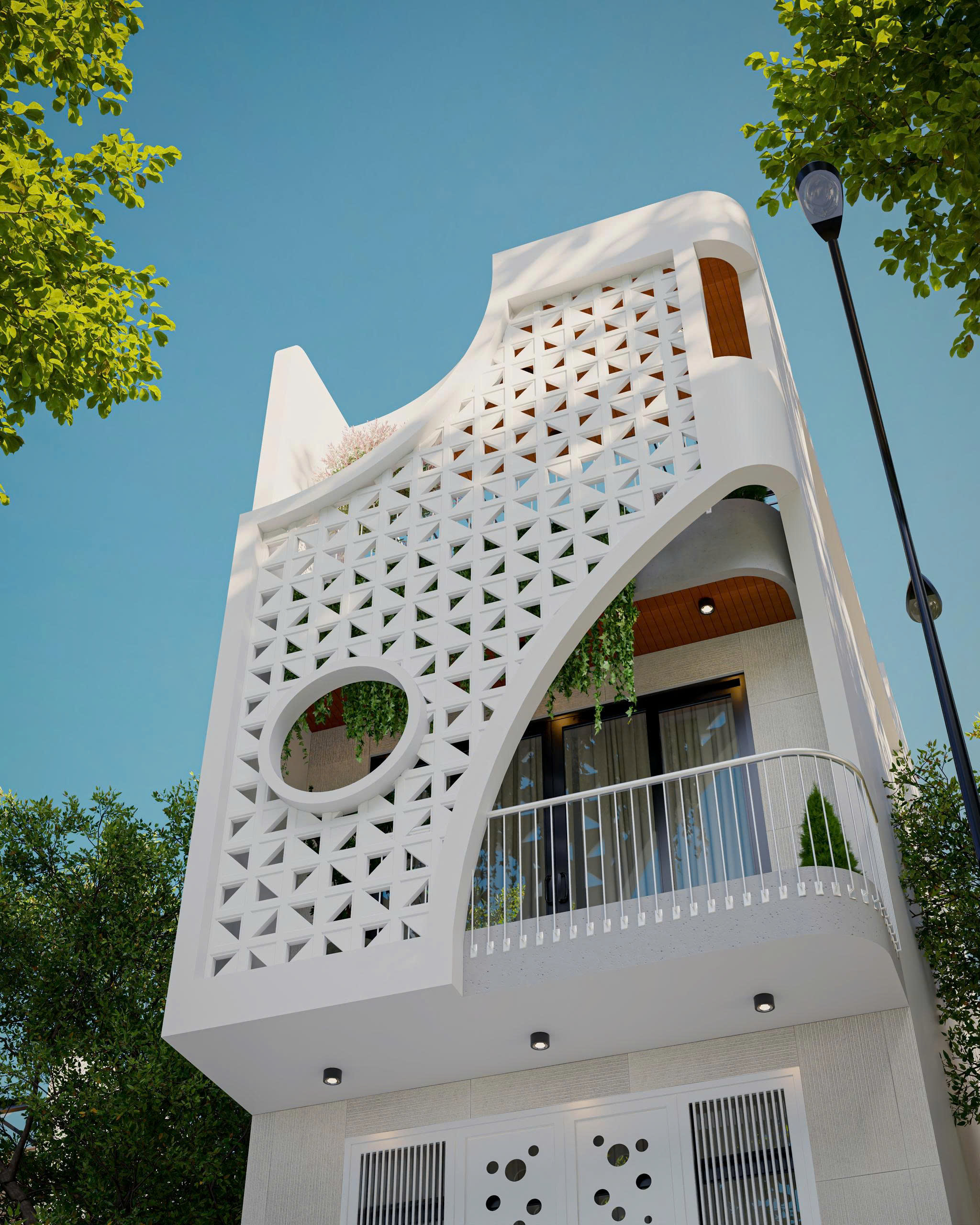 Thiết kế này vừa mang lại dấu ấn kiến trúc riêng, vừa giúp công trình không bị khô cứng hay nặng nề.